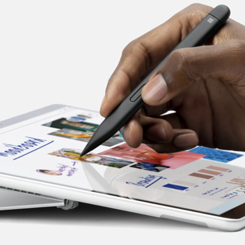 جدیدترین محصول مایکروسافت در حوزه استایلوس های حرفه ای Slim Pen 2 می باشد . این محصول از تکنولوژی های اختصاصی مایکروسافت همانند موتور هپتیک برای ایجاد حس نوشتن بهره می برد که لذت استفاده از آن را دوچندان کرده است. یکی از موارد شاخص این محصول طراحی جدید نوک آن می باشد که حس بسیار خوبی همانند مداد به کاربر میدهد. این استایلوس نازک به راحتی در میان انگشتان قرار گرفته و برای استفاده در جدیدترین مدلهای سرفیس و حتی موبایل duo 2 بهینه شده است. این محصول تا بلوتوث نسخه 5 را پشتیبانی کرده و با 4096 مرحله حساسیت و 15 ساعت شارژ برای کاربران فوق العاده است. لیست کاملی از محصولات مایکروسافت توسط این قلم پشتیبانی می گردد که در مشخصات محصول به آن اشاره شده است.